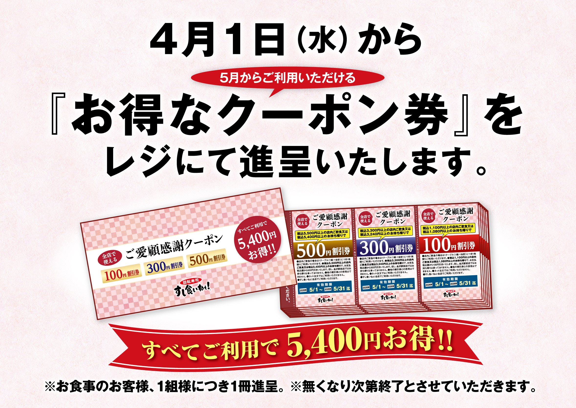4月1日(水)から、『お得なクーポン券』を進呈いたします。