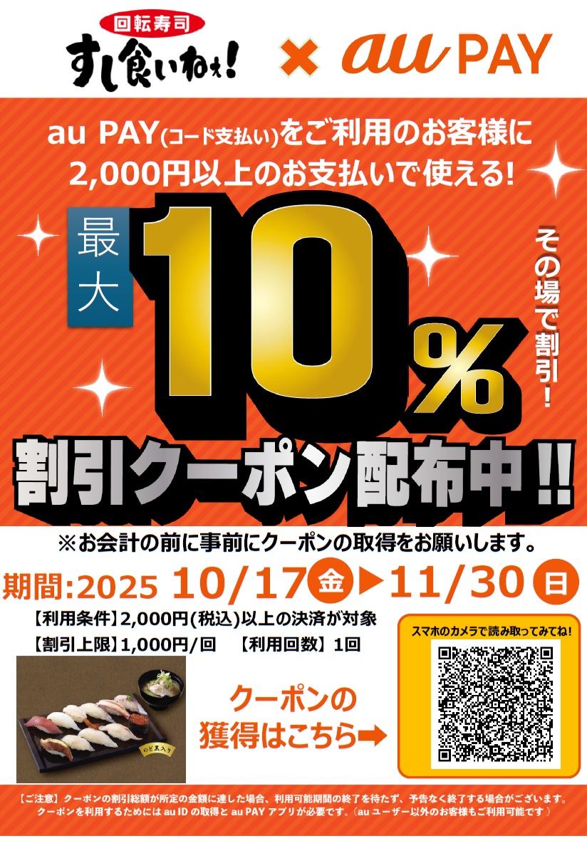 10月17日(金)より、auPAY 10%割引クーポン配布中!