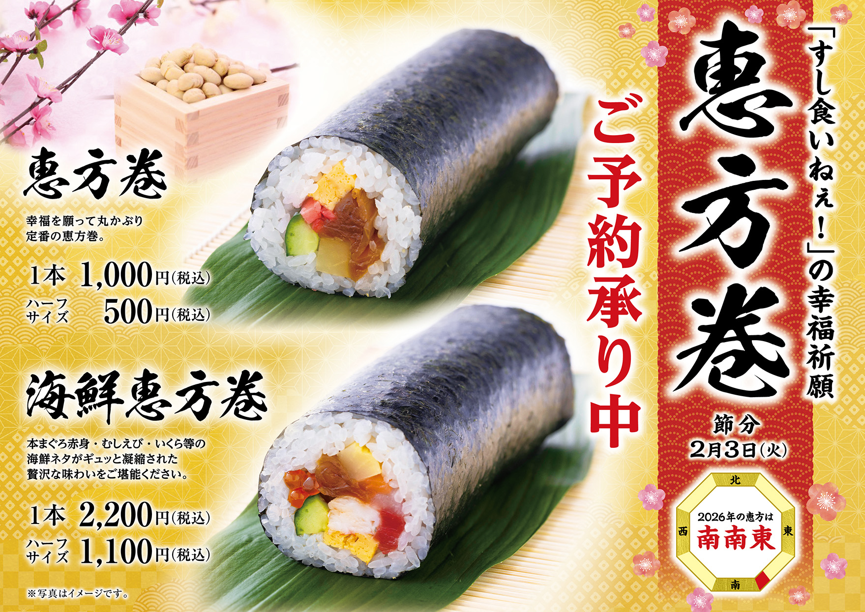 3. 今年は 2月 3日(火) です。恵方巻、ご予約承り中!