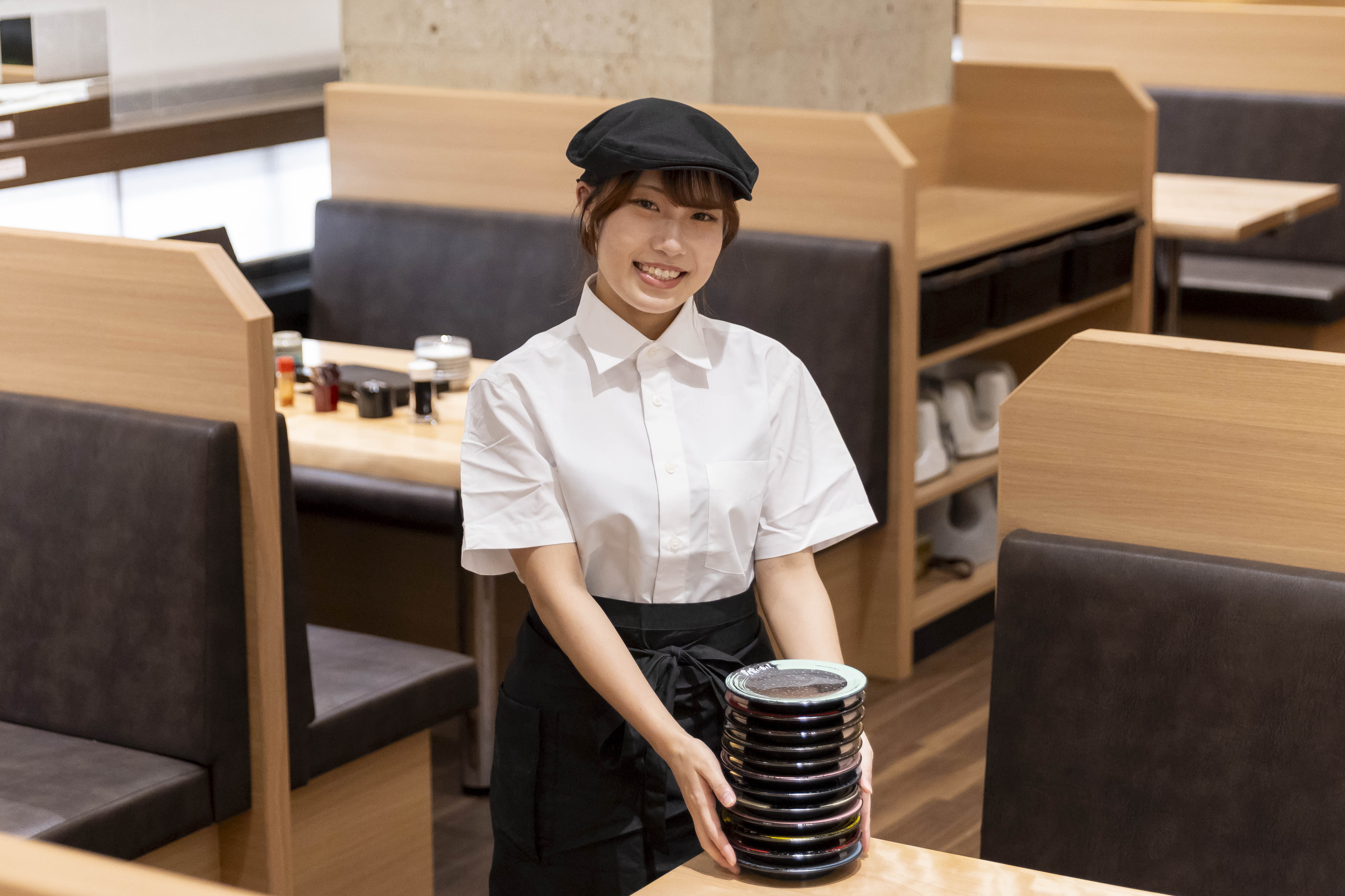 お客様のご案内やお皿の上げ下げがメインなのでかんたんです。 ほとんどタッチパネルでお客様が注文しますので未経験の方でもすぐにお仕事に慣れていただけますよ♪ |
